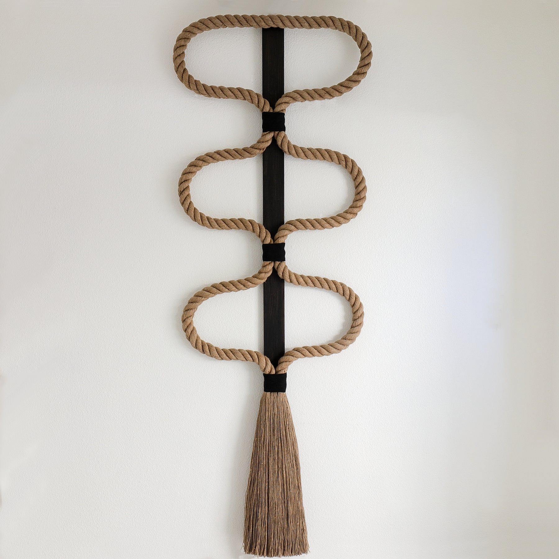 Discover timeless allure in our mid-century-inspired rope sculpture, a symbol of understated elegance and enduring charm. Crafted from organic natural materials, its muted tones and earthy textures evoke a sense of rustic simplicity. The Element, a magnificent wall hanging, boasts a warm and earthy color palette to enhance any space.